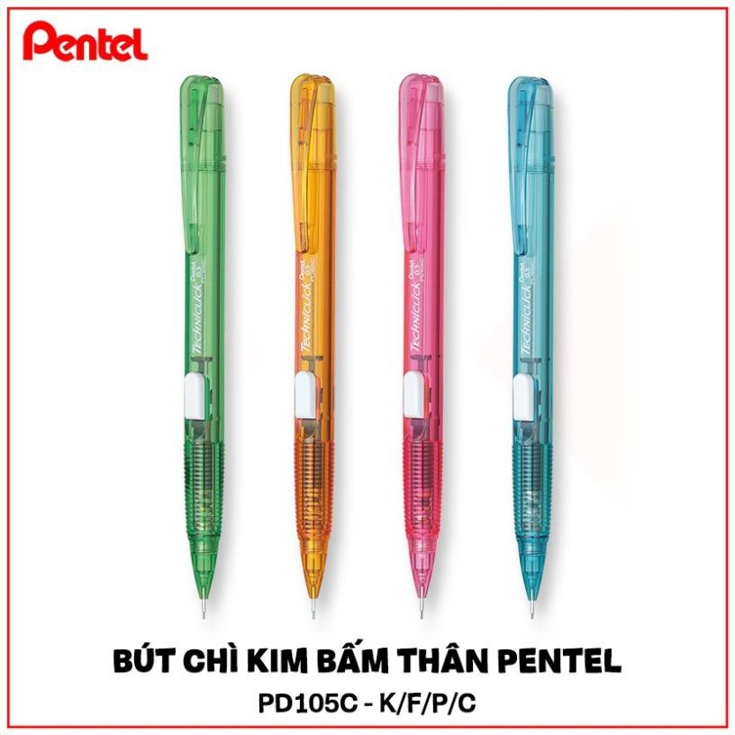 Bút Chì Kim Bấm Giữa Thân Trong Pentel 0.5mm - PD105C sở hữu bốn sắc màu trẻ trung, cá tính rất bắt mắt. Với thiết kế thân nhựa trong tinh tế, chất lượng hoàn hảo, sản phẩm không những là công cụ hỗ trợ tuyệt vời cho việc ghi chép mà còn thể hiện được cá tính riêng của bạn.