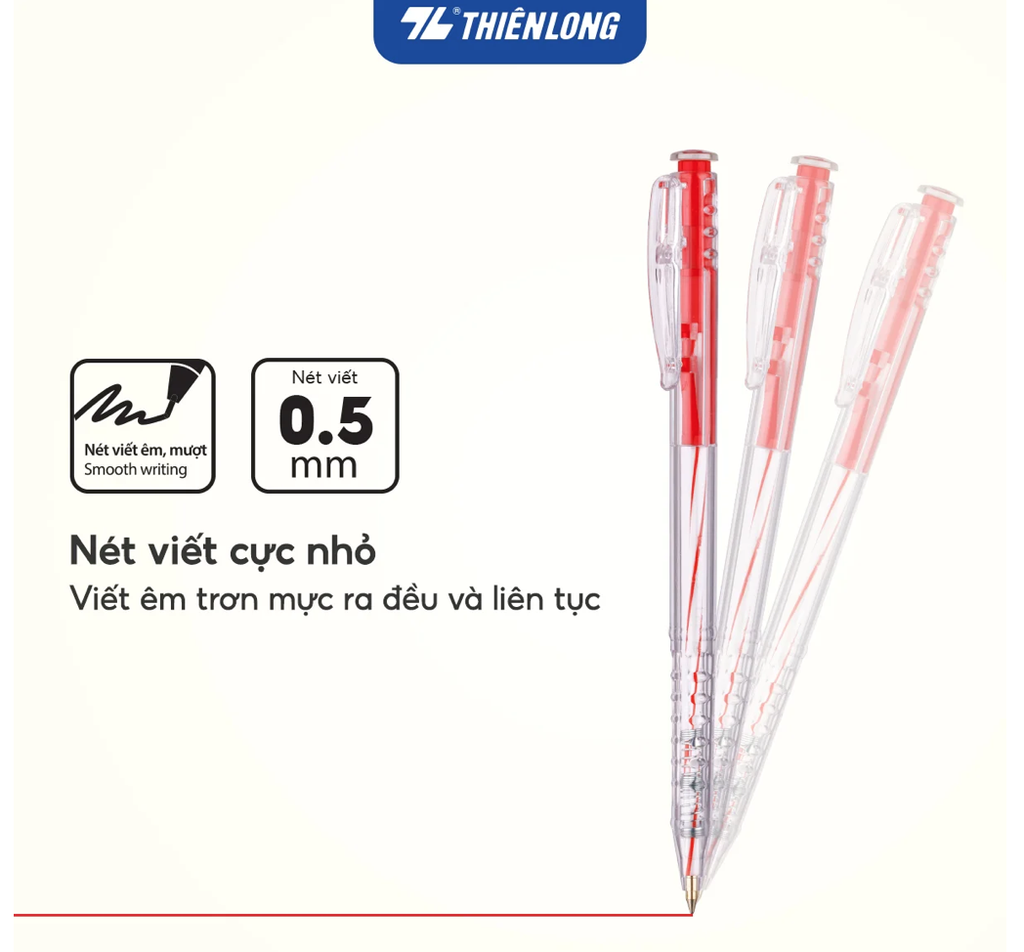 - Ngòi bút 0.5mm cho nét chữ thanh mảnh, sắc nét.