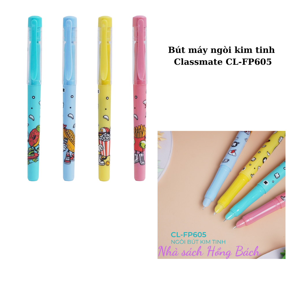 - Tên sản phẩm: Bút máy CLASSMATE Thiết Kế Foods Màu Pastel, Dành Cho Học Sinh, Ngòi Kim Tinh, Nét Bút Đẹp, Mực Đều CL-FP605