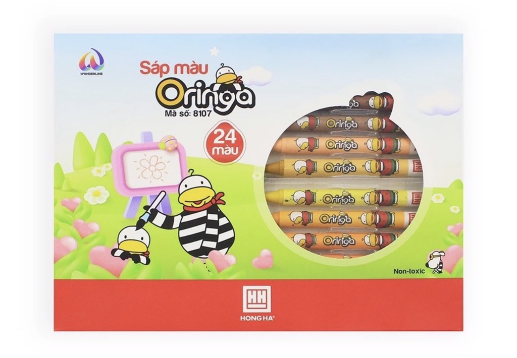 Sáp màu Hồng Hà Oringa (24 màu) cho chất lượng màu sắc nét, có độ bám giấy cao, độ phủ màu đều và độ bền màu tốt. Bên ngoài hộp giấy còn được in hình ảnh của những chú vịt Oringa ngộ nghĩnh, tinh nghịch nhưng vô cùng đáng yêu giúp khơi gợi sự thích thú của bé với bộ môn mĩ thuật.